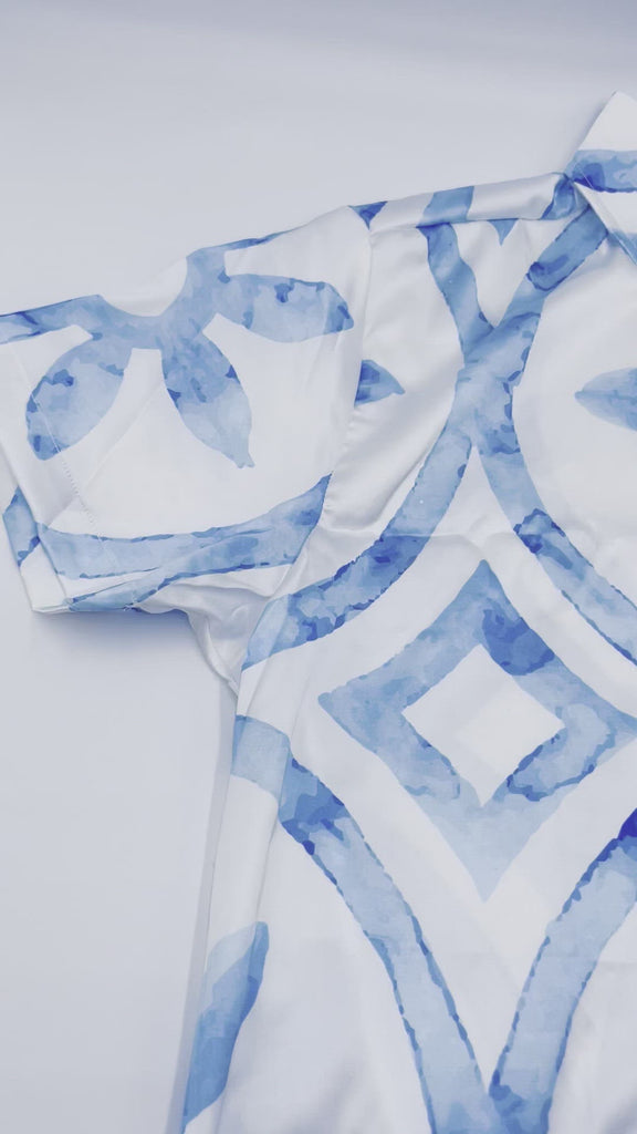 The Vizcaya Villa Shirt, short sleeve, is a LIMITED EDITION design, SUMMER 2022 Tropical Opulance Collection, handmade by the Luxury Men's Beachwear Brand KBAYO.